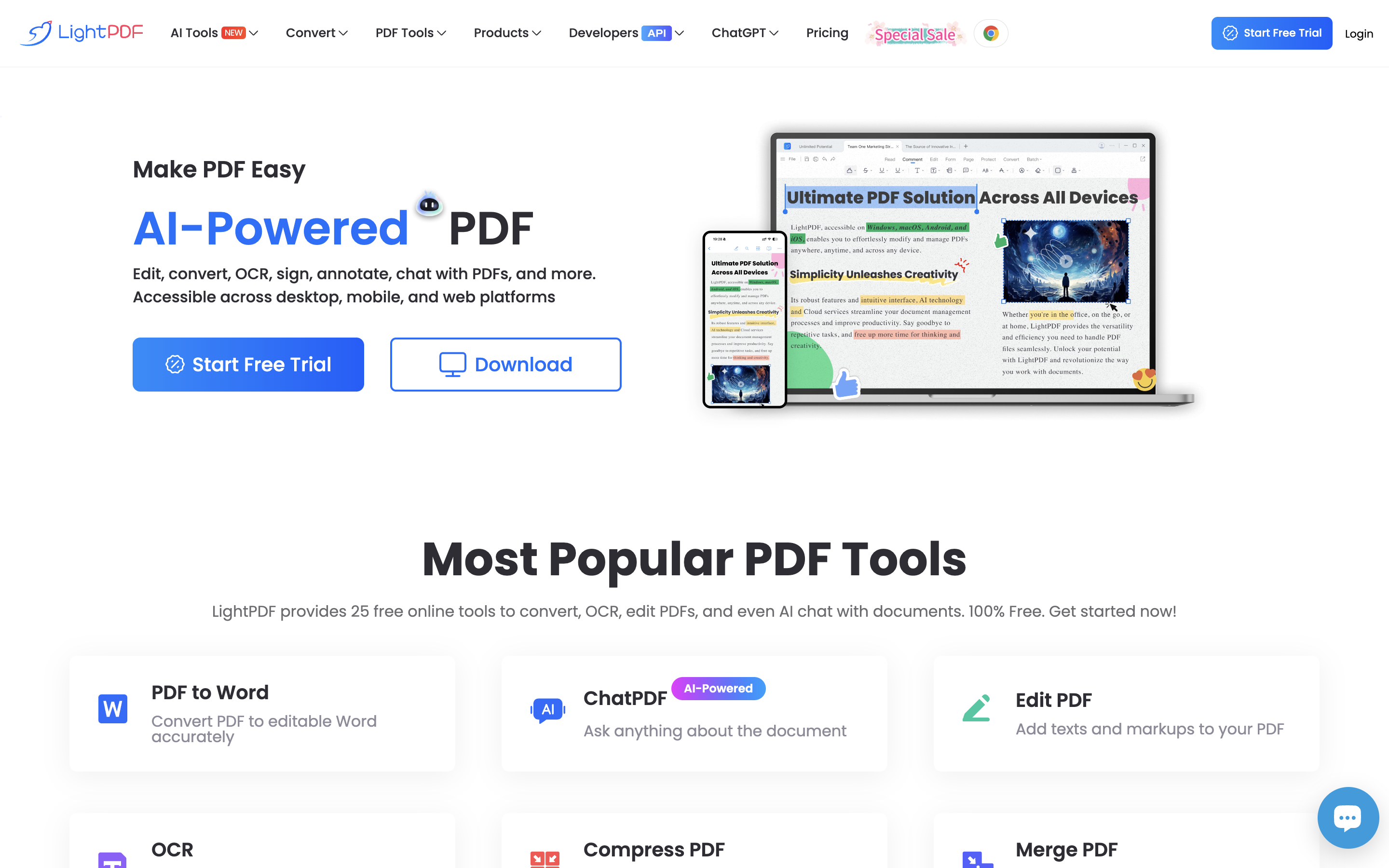 AI-powered all-in-one PDF editor, converter, and reader with 25+ free online too...